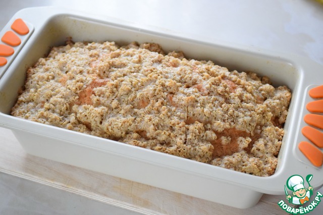Через 35 минут достаем кекс из духовки и распределяем по верху весь штрейзель. Ставим в духовку еще на 20-25 минут. Ориентируйтесь по своей духовке! (Выпекаем до сухой лучинки).