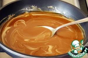 Полученную смесь выливаем на сковороду или в сотейник и подогреваем на медленном огне при постоянном помешивании. Только не уходите, соус может подгореть.