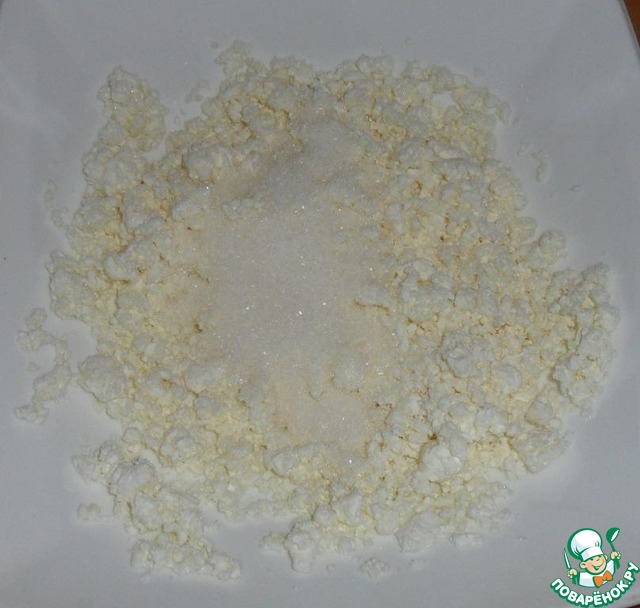 Пока блинчики отдыхают, приступаем к крему. Соединяем творог, сметану, сахар, ванилин и всё хорошенько взбиваем. Это белый крем.