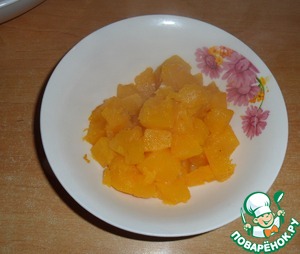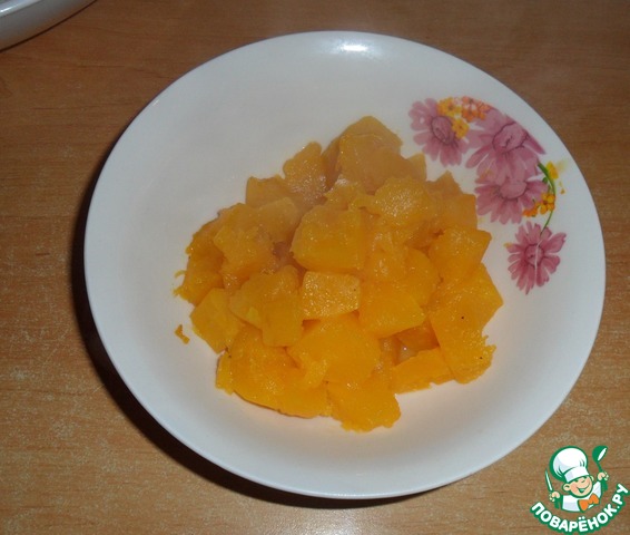 Для жёлтого крема тыкву нарезаем кусочками, добавляем 2 ст л сахара, и тушим на небольшом огне под крышкой, иногда помешивая и при необходимости подливая воду.