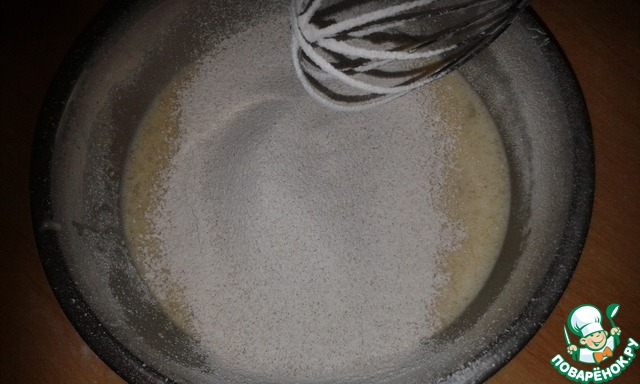 Добавить яйцо, просеять оба вида муки, влить масло. Оставить на полчаса в теплом месте