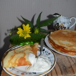 Это детство... Это самые вкусные бабушкины блины, с кисловатым традиционно-деревенским запахом дрожжей, толстые, дырчатые, пышащие жаром, политые сметанкой и посыпанные сахаром... Мне тогда казалось, что никакой торт не сравнится с этими блинами. Это очень простое блюдо, как и все, что было тогда - но, как и все, что было тогда, самое-самое...