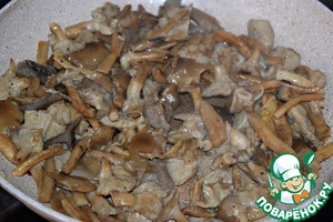 Обжарить грибы в небольшом количестве растительного масла. Важно, чтобы вся жидкость выпарилась в процессе обжарки. (лишняя влага в пироге не нужна) -