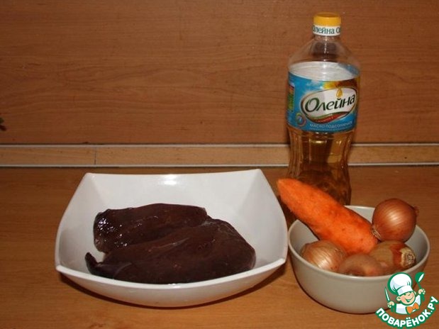 Печень промываем холодной водой, моркрвь и лук очищаем.