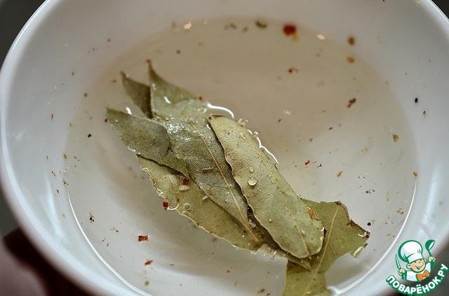 Смешиваем соль, сахар, чёрный перец, лавровый лист и заливаем всё стаканом горячей воды. Соль сахар растворятся. Добавляем пиво.