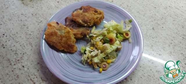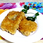 Опять обваливаем в муке, затем в яйце и ещё раз в муке. Итого получится 3 раза в муке и 2 раза в яйце. Выкладываем в сковороду с горячим маслом и обжариваем на небольшом огне минут по 7 с каждой стороны.