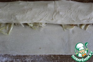 Закрываем начинку одной стороной теста, затем внахлест другой.