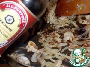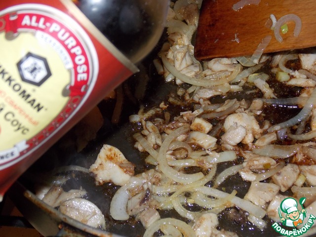 • Влить соевый соус, прогреть 2 минуты. Остудить.