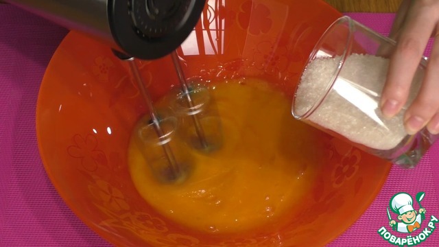 2. Готовим основу торта, т. е. шоколадный кекс. Для этого у 9 яиц отделяем белки от желтков и сбиваем их с сахаром в отдельных ёмкостях с помощью миксера.