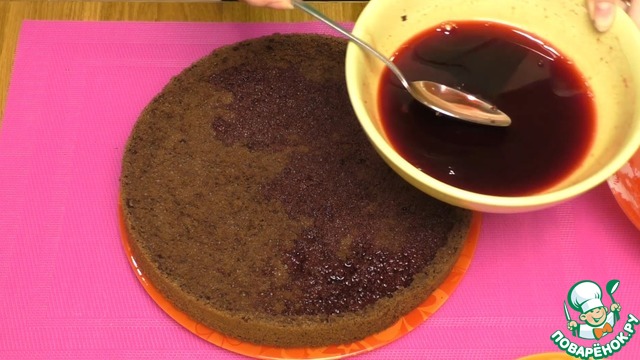 12. Оставшимся соком от вишни пропитайте оба коржа.