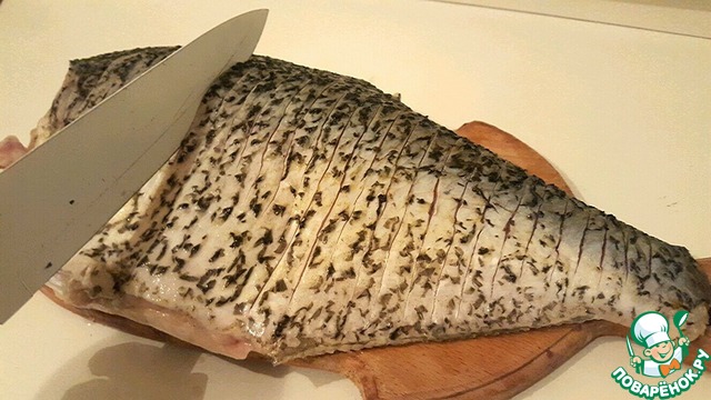 Берем рыбку и делаем надрезы по всей длине