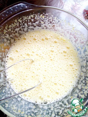 Вливаем в яйца кефирно-содовую пену, перемешиваем. На этом этапе я добавила сухое молоко, перемешала.
