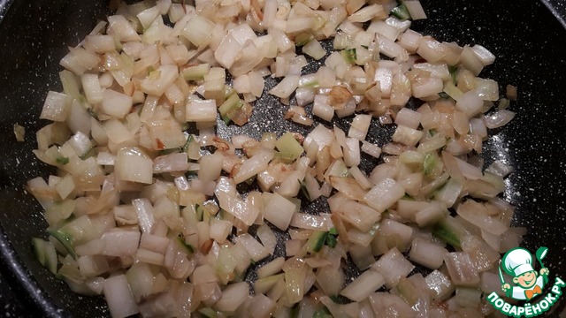 В сковороде на среднем огне на растительном масле обжарить лук до золотистости. Добавить белую часть мангольда, припустить минут 5. Накрыть крышкой и тушить еще минут 5 в собственном соку. Если сока мало, ОБЯЗАТЕЛЬНО подлить ложку-другую воды.