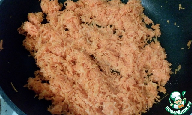 Морковь тушим на подсолнечном масле не до готовности. В конце посолить.