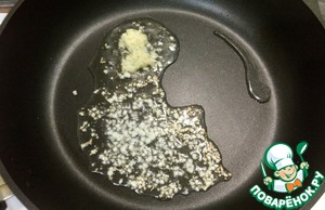 На подсолнечном масле минуту обжарить натертый имбирь и мелко рубленный чеснок.