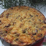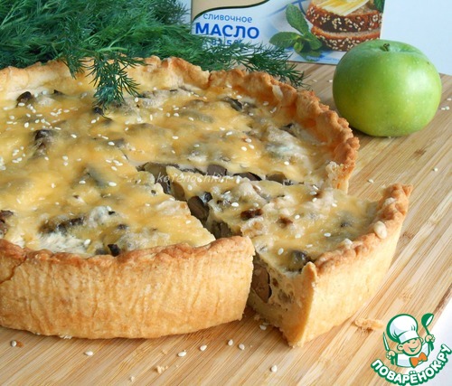 Выпекать пирог при 180*С 20-25 мин, затем посыпать сверху тертым сыром и выпекать еще 15 мин.