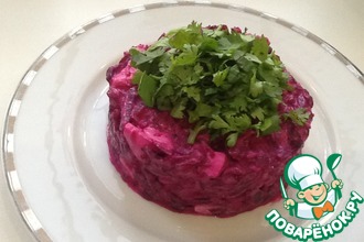 Выложить в салатник. Украсить зеленью.