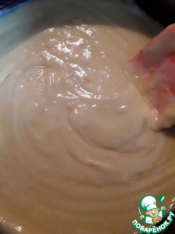 Добавляем апельсиновый сок и половину от общего количества молока.