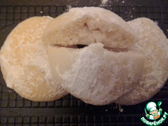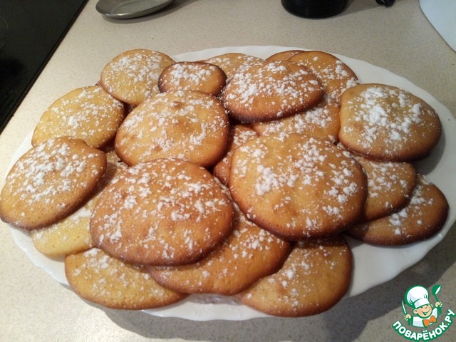 Ставим протвинь в разогретую духовку и выпекаем 8-10 минут при температуре 200- 225 градусов, после чего вынимаем печенье аккуратно, т. к. оно очень нежное и хрупкое. При желании посыпаем его сахарной пудрой.