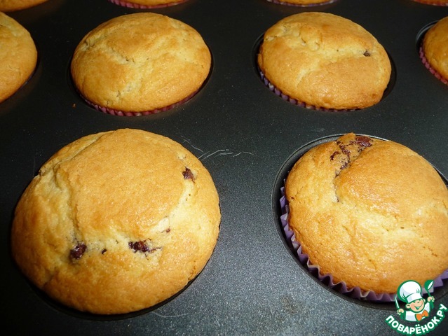 Разогреть духовку до 220С. Выпекать маффины пять минут, затем уменьшить температуру до 175-180С и печь еще 15-17 минут (следите за своей духовкой).