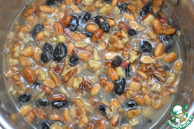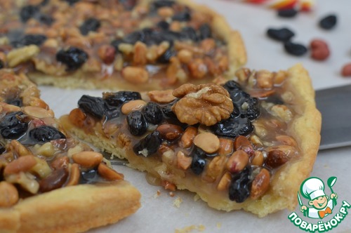 Выложить ореховую смесь на песочную основу и дать остыть.