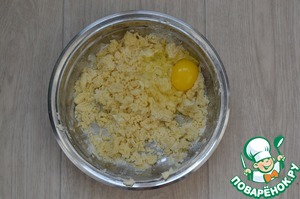 В миске смешать муку, соль, разрыхлитель, сахар. Добавить сливочное масло ТМ Милье, перетереть руками все в крошку.