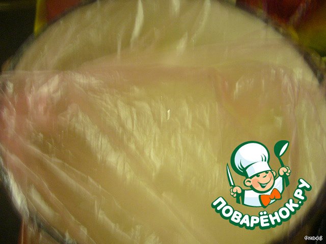 В кастрюле осталось примерно 2/3 части теста, которые я опять закрыла пленкой и убрала в холодильник.