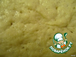 Тесто получилось жидковатое, как густая сметана. У меня оно заняло в кастрюле примерно 1/5 кастрюли, накрыла п/э пакетом, чтобы не заветрилось, и оставила на столе на 3 часа. -