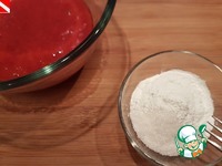 Желатин замочить в холодной воде. Клубнику (у меня размороженная замороженная) пробить блендером в пюре. Отдельно смешать сахар и крахмал. -