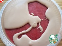 Убрать с огня, добавить подготовленный желатин. Размешать, немного остудить и вылить в затянутое пищевой пленкой кольцо диаметром 16 см. Убрать (вместе с доской) в морозильник до полного застывания.