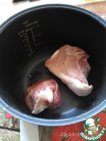 • Сварить мясо, посолив и добавив черный перец горошком (по вкусу) и лавровый лист. Мне нравится варить мясо в мультиварке, но можно и в обычной кастрюле