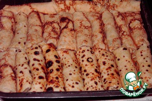Нафаршировать блины, сложить их в противень.