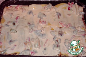 Сверху разложить оставшийся сыр.