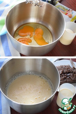Яйца взбить миксером в легкую пену. Добавить сахар и взбить до увеличения в объеме и побеления массы. Миксер убираем. Он нам уже не нужен.