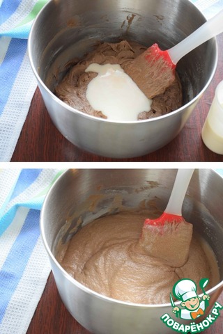В 3-4 приема вводим мучную смесь и хорошо перемешиваем тесто.