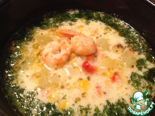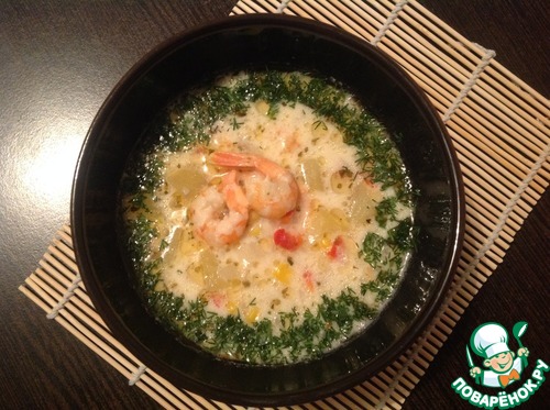 Рецепт «Суп сырный с креветками»: