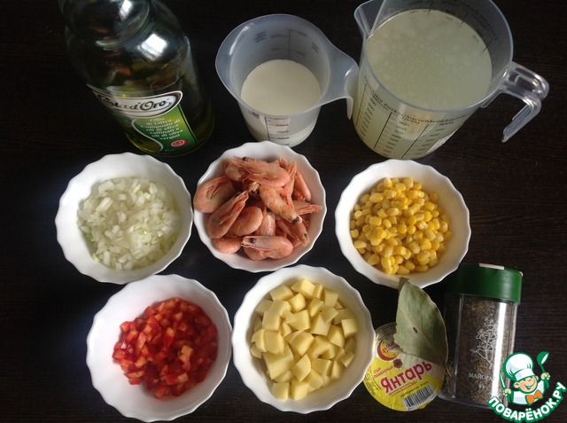 Ингредиенты для «Суп сырный с креветками»: