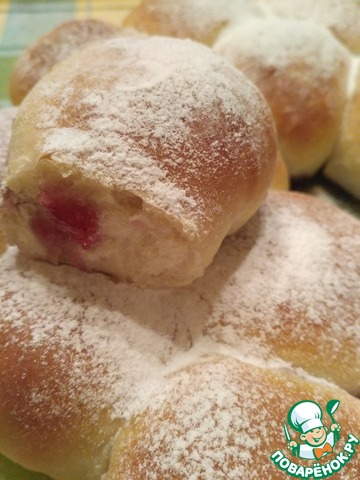 Начинку стоит готовить непосредственно перед использованием. В противном случае сахар успеет раствориться в ягодах и начинка получится слишком жидкой, что осложнит формовку булочек. -