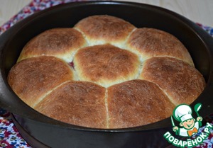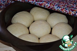 Выложить булочки в форму (диаметр формы 21 см), смазанную растительным маслом, накрыть льняным полотенцем и оставить на 15-20 минут.