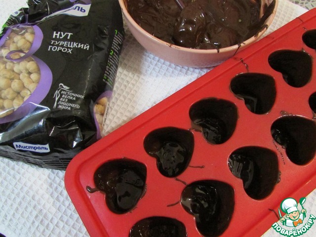 Спешу поделиться рецептом вкусных шоколадных конфет. Какие же они ароматные, словно из хорошей кондитерской. А этот божественный вкус! Он очарует вас своей невероятной нежностью и изысканностью орехово-нутового пралине. Пралине может быть из любых орехов: миндаль, фундук, грецкие, фисташки, и как оказалось, даже из нута. Эта начинка восхищает! Конфеты очень вкусные и ничем не отличаются от тех, которые мы привыкли покупать в магазине. Эти удивительные конфеты я приготовила в подарок на 8 марта своим девочкам по работе. Надеюсь, им будет вкусно!!! За идею благодарю девушку Людмилу.
