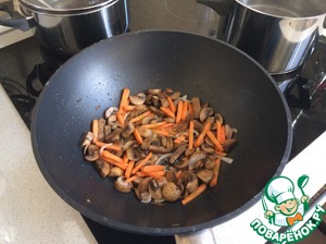Добавить в сковороду морковь, важно не ужаривать овощи. Они должны быть свежими.