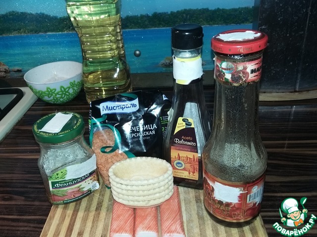 Ингредиенты для «Закуска с чечевицей и крабовыми палочками»: