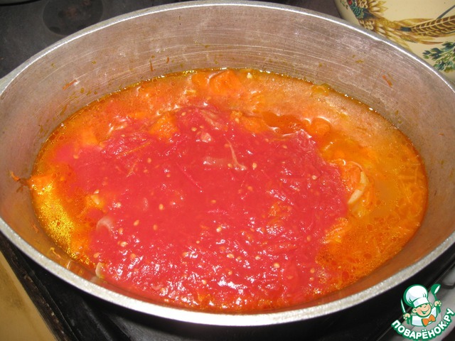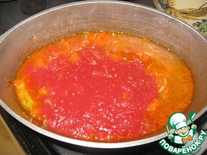 Добавить томатный сок и довести все вместе до кипения. Остудить