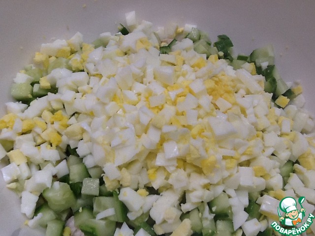 Яйца отварить вкрутую, остудить, мелко покрошить.