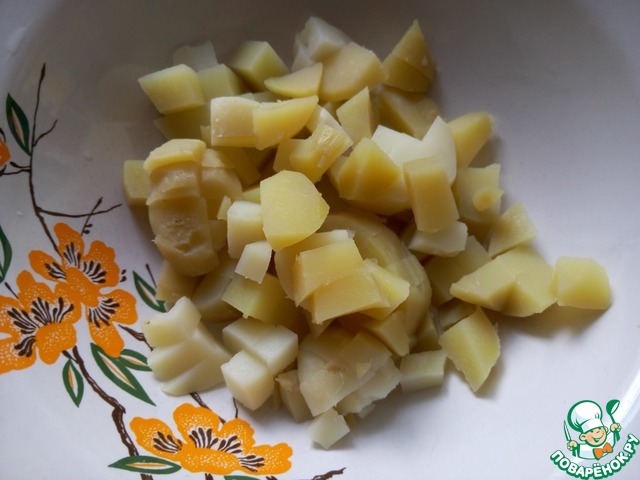 Картофель очистить от кожуры и нарезать на небольшие кубики.