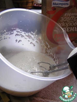Взбить яйца с сахаром в пышную крем-пену не менее 5 минут.