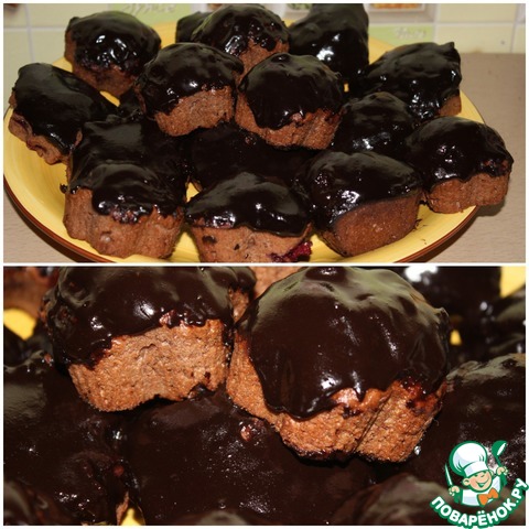 Я полила горьким шоколадом и посыпала ягодами брусники. Сверху чуть притрусила сахарной пудрой. -