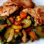 [+5]Вместо кабачка картофель - и замороженное овощное ассорти "Карибская смесь. Всё прекрасно получилось и мясо и овощи. Отличное блюдо.