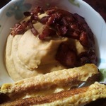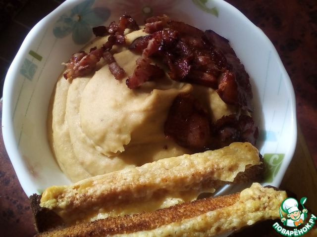 По желанию - поджарьте на сухой сковороде бекон и положите сверху. Я подавала с ржаными сухариками.