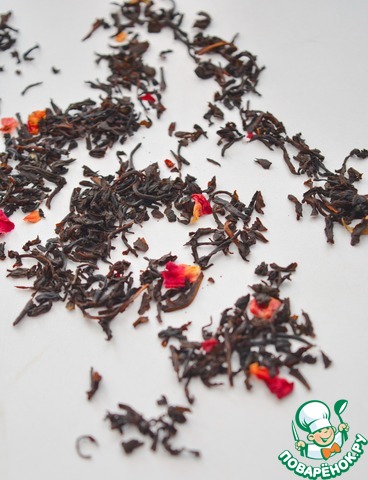 Чай я взяла ароматизированный. В его составе: чай черный, клюква, ваниль, ананас сушеный, лепестки розы.